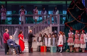 The play is longer than many are used to, so be prepared for act one being close to 1 1/2 hours and act two being near one hour. The beauty of this production is the swiftness that moves them from scene to scene so that the old saying “time flies when you’re having fun”, holds true. On the tech side, I loved the costumes (Rachel M. Sypniewski) and the lighting (Chelsea Lynn) and the videos being added to the story. This is a wonderful holiday show for the family and as always Music Theater Works finds the right talent for their productions.