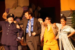 The musicians were up in the projection booth area ( this was a movie theater, back in the day). Aaron Kaplan and his seven musicians brought Sondheim’s music to life. Beth Laske-Miller’s costumes were smashing and Arielle Raybuck’s props were fitting. What makes a show like this effective? The cast enjoying what they are doing and this cast sure seemed to be having a ball with the story and music. Hats off to Jeri Hart, Andrew Buel, Aaron Mann, Dustin Rothbart, Jonah Cochin, Ben Isabel, Christopher Johnson, Brian Warner, Katherine Dalin, Heidi Hansfield, Dennis Schnell, Wendy Parman Amanda Vinson and narrator John Frisco.