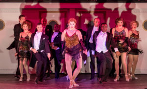 The premise of the story is that our hero Billy Crocker (a superb job by Ken Singleton) is in love with a young lady , Hope ( sweetly played by Lexis Danca) who it turns out is about to marry an English Lord, Lord Evelyn Oakleigh ( played to perfection by Maxwell J. DeTogne, who is quite the dancer and comic). Not for love, but for his status and wealth to keep her mother (Liz Norton) from becoming broke. After all, this takes place in the 1930’s and there were some real down days back then. Billy’s employer, Mr. Whitney(deftly handled by Rick Rapp) is going on the same cruise ship as the soon to be married couple and has asked Billy to dump some stock before the market crashes. Billy never leaves the ship and so of course, the stock sits where it was.