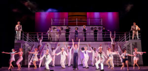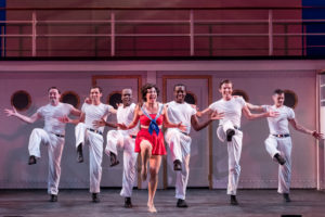 The new set designer (Kristin Martino) designed a great cruise ship, allowing the show to move swiftly and smoothly from scene to scene. Act One is a tad long ( one hour and thirty nine -minutes), while act two only about an hour. That was the way musicals were done in the old days. Alexa Weinzierl’s costumes were amazing, and the lighting ( Andrew H. Meyers) and sound (Aaron Quick) perfect. Jamie Karas did a bang up job on the props and the orchestra ( a solid feature of this company) conducted and directed by Roger L. Bingaman was as solid as usual ( and expected by their well-seasoned audience).