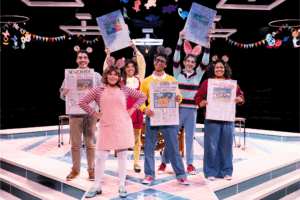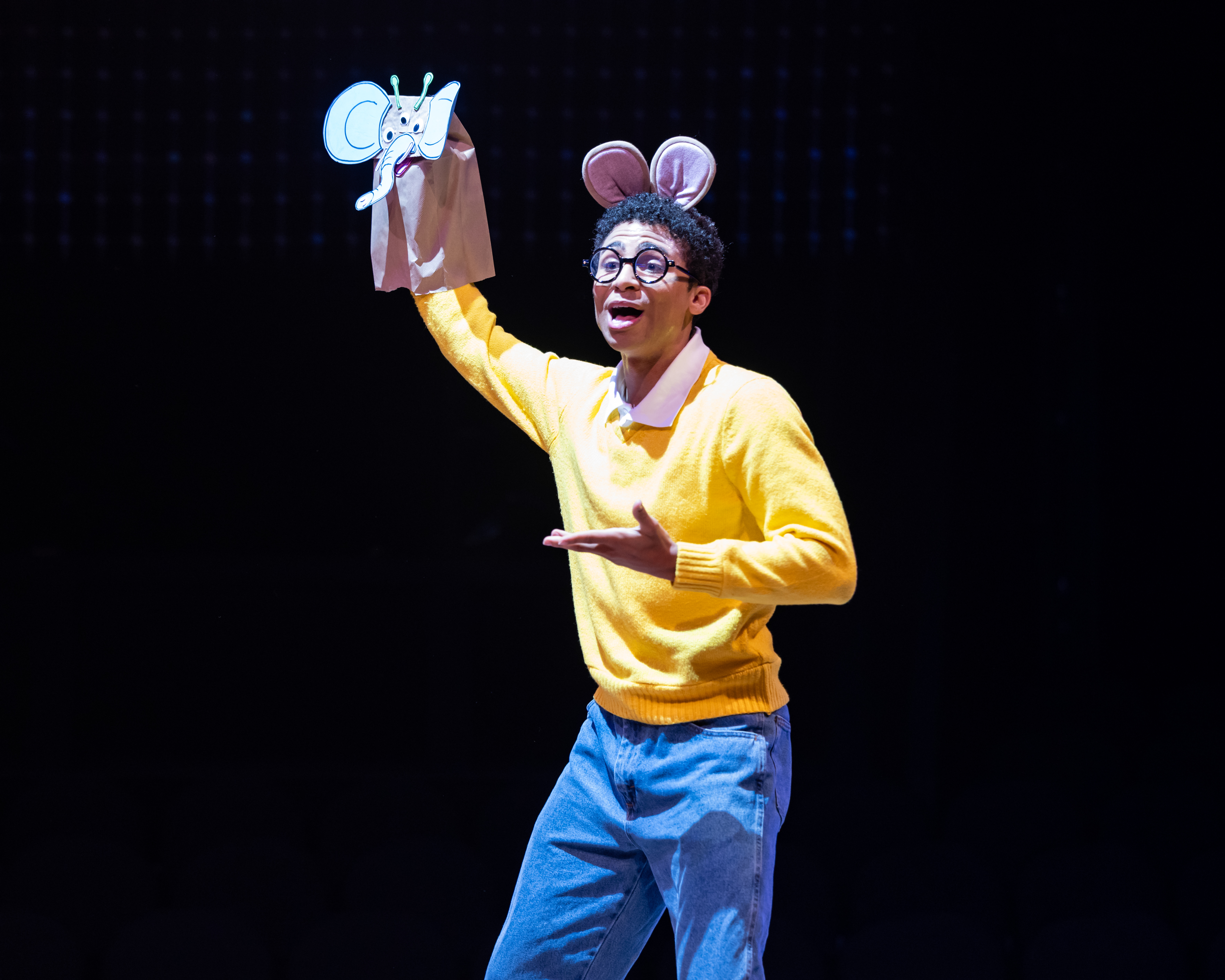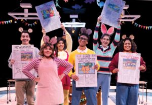 The production, which runs about 64 minutes without an intermission is directed and choreographed by Tommy Rivera on the in-the-round stage at Marriott. While this is often a challenge, Marriott and its staff have always found the perfect way to present their shows, allowing great sight lines for viewers of all ages. Let’s face it, little ones ( and often grandparents as well) can drift off. This show, even though there are a few slow spots, doesn’t allow for that. The show is all about embracing who you are and feeling secure with one’s self. This is a great lesson and the story, which is all about a school project of doing a musical variety show gets each of the characters to think about stories and in doing so, Arthur (Winter Olamina) discovers that being himself and knowing who he is is far more important than the crazy story he wanted to write.