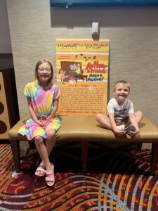 Anna and Jack really enjoyed Arthur and Friends make a Musical. This is the 5th play we have seen at the Marriott Theater and every time I’m amazed at how they transform the space for each performance. It’s a small stage but they make the most of it with 360 degrees of lights, wheel-able props and decorations that drop down from the ceiling. The kids all over the theater especially enjoyed bubbles at the end of the show.