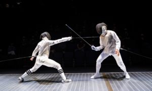 [rating=3]There are times one sees a production where the performances are wonderful, the direction is perfection and the experience, one to remember, yet, it is not a production you would suggest your best friend must see! In my case, since his son was a fencer ( not one who puts up fences, but one who duels and  crosses swords/foils in competition), I might. Writers Theatre is known for bringing us unique works for stage and I must say that “Athena” is just that. Written by Gracie Gardner, “Athena” is a play about two high school girls, as different as one can imagine, but who share two loves, “fencing” and the desire to win.