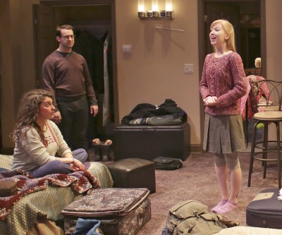 Joshua Harmon’s comedy has been moved from a 99 seat theater to the much larger North Shore Center for the Performing Arts, a 318 seat theater, intact. Same set and same cast, a powerful foursome of actors who get into their roles with the heart and soul of the characters that have been brought to this special place in their lives. This is a story about family, tradition and adapting to the modern world. “Poppy” ( grandfather of three of the four characters) has died. We meet the youngest grandson, Jonah (well played by Cory Kahane, who handles underplay with great expertise) and his cousin Daphna ( a powerful performance by Laura Lapidus) who have just attended the funeral and are preparing for the mourning period they will face called “Shiva”.
