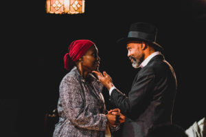 We learn that Dave is a gambler as well as an up and coming cop, reaching for the “golden ring” and from his gambling winnings, he was able to purchase a striking and very expensive engagement ring for Audrey. He is also a very dapper dresser. I tell you this, because later in the play, these things will enter into the story. There is also a Church Woman (Gabrielle Lott-Rogers) who makes a one scene appearance that will change the outcome of the story and the change in “Pops” as a man. You will be amazed!