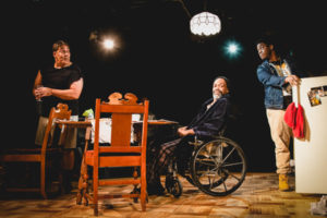 “Between Riverside and Crazy” is two hours of solid story telling, bringing us into the life of a man,  Walter “Pops” Washington ( an extraordinary performance by Kenneth D. Johnson), an ex-police officer, wounded in the line of duty who is trying to get compensated for the incident that caused him to be somewhat incapacitated. His wife has recently passed away and his house has become a home to his son, Junior ( well- played by Kevin Tre’Von Patterson). an ex-con and his friend, Oswaldo ( deftly handled by Johnny Garcia) and Junior’s girl friend, Lulu ( Almanya Narula). At first look at this household, one would say this is a very dysfunctional household ( or even family).