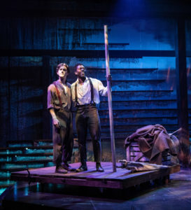 [rating=4] If you love “Bluegrass”, then you will fall in love with “Big River” ( The Adventures of Huckleberry Finn) with music and lyrics by Roger Miller. In this musical story written by William Hauptman, adapted from the writings of Mark Twain, we take a trip down the “Mighty Mississippi” with Huck Finn ( Newcomer Eric Amundson will knock your socks off with his interpretation of this timeless character) as he helps his friend Jim (deftly handled by Curtiss Bannister) escape from slavery to freedom.