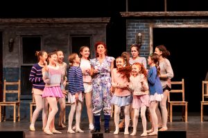 Billy Elliot is a powerful musical based on the 2000 film by the same name, with musical scores by Sir Elton John. A difficult show because of the theme. A young boy Billy who has to struggle to be true to himself, and at the same time try and help unite a family and a broken community. In 1984 -85 the UK had a major strike. The National Union of mineworkers staged a strike against the National Coal Board. The strike was illegal, because it never came up for a national vote, and it pitted the Great Margaret Thatcher (The Iron Lady) against the illegal strikers. But during this bleak time, an eleven-year-old boy discovers his love for dance. The star of the show Billy is played by Jake Siswick. His moves are flawless, he was great to watch in the role. The standout newcomer in this show is Billy’s best friend Michael, played by Kai Edgar. This young man has tremendous dance ability and is going to be unstoppable later in life. The entire cast is a perfect fit for this show, Mrs. Wilkenson, the constant smoking, down to earth Britt is played by Casiena Rather, who just is dazzling in this role. At first, I was comparing her to Haydn Gwynne who originated the role, but after a few minutes, I really enjoyed her interpretation. And the two newcomers to Theatre Works are Matt Miles as Billy’s father and Brandon Michaud as Billy’s brother Tony. Both were perfect in these roles. The entire cast was what I expected from Music Theatre Works.