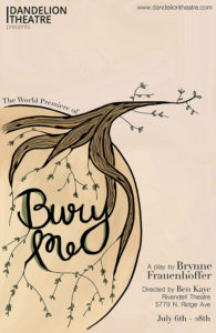 Recommended *** Many of you are aware of the small storefront theater called Rivendell, next to the pizza joint on Ridge Avenue, near Senn High School. While Rivendell is doing their production at Victory Gardens, they are renting their space out to a new company, Dandelion Theatre, who is presenting a World Premier called “Bury Me” written by Brynne Frauenhoffer. According to the notes on the playwright, this is not her first play, BUT is the first one she ever finished.