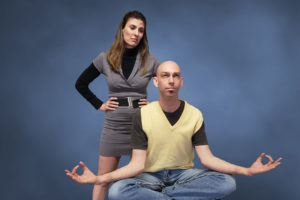 Directed by Bernard Rice, who does some wonderful “physical comedy” touches with the help from fight choreographer Andrew J. Pond, the small stage works allowing each audience member in the intimate theater to feel as if they are the proverbial “fly on the wall” observing life a sit happens. The first story in Suite 201-203 is “Visitor from New York”. The visitor is Hannah Warren ( smoothly portrayed by Susie Steinmeyer) who has made the journey o LA to meet with her ex-husband relative to the custody of their daughter. Her ex, William is deftly handled by Michael Dwiggins, who has become the more relaxed of the couple and has made the adjustments far better than Hannah has. The conflict over custody is one that is more serious than other stories and while well done by the actors, is , for many viewers, a bit more serious than one expects from Neil Simon.