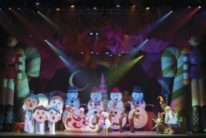 The show is now on the stage of the Chicago Theatre, a landmark, underused venue that I would love to see utilized for more performances of actual theater. The story line is Christmas for sure as we wake up the season with visions and dreams. The stage is filled with beauty (Jon Craine) and the technical aspects of the show are a delight. The songs that were written for the show are by Jill Winters and David Scott with many holiday songs we know ( “Jingle Bell Rock”, “Rockin’ Around The Christmas Tree” and “Winter Wonderland”) and while the story is on the weak side, most of the audience members are more interested in the actual acts and feats they witness during the 2 1/2 hours of magic.