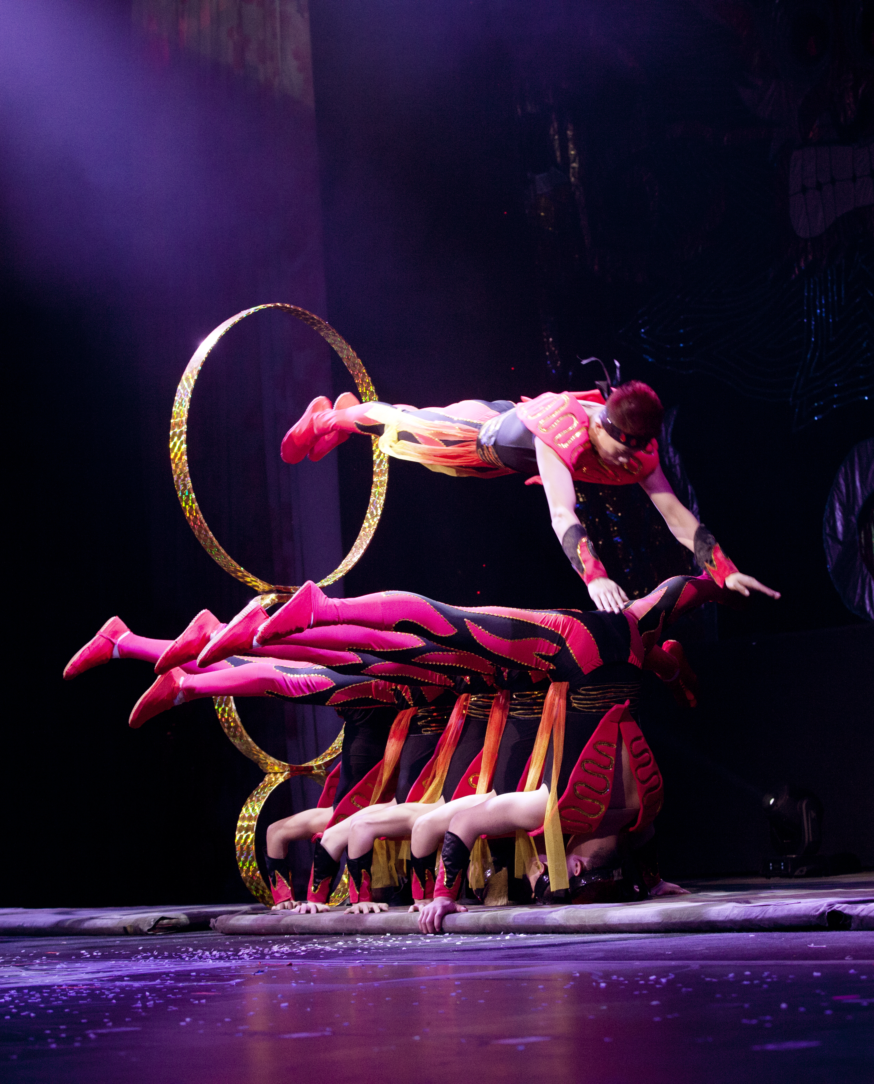 I was in awe as the troupe performed one amazing feat after another. The audience was fixated by the beauty,energy and physicality displayed by this troupe, keeping them on the edge of their seats from start to finish. I loved the “Chinese Flex Bar” as the tumblers did incredible somersaults and twists landing on a space that did not seem possible to land on. The “Gravity Swings” took your breath away and the “Wheel of Destiny” makes your hear beat as the performers flirted with disaster.