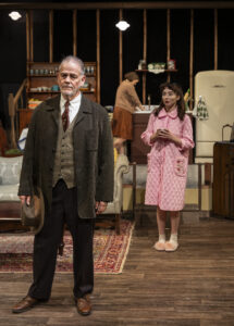 Inge , who loved the work of Tennessee Williams, and after witnessing “The Glass menagerie”, began writing his own works. Most people know of him for “Picnic” and “Bus Stop”, as well as “The Dark At The Top Of The Stairs”, but his second work, “Come Back Little Sheba” is one, that although written some 70 years ago, still reflects some of what is happeing in our country. ABT’s production, in their intimate Studio , smoothly directed by Elyse Dolan, is a powerful 90 minutes of theater. The set (Shayna Patel) is one where we see the living room and kitchen area, as well as the back yard and many of the audience members are seated in couches and Chairs surrounding the stage area. I think there are 32 seats in total.