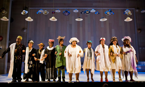 [rating=4]It is hard to believe that we first bore witness to Regina Taylor’s “Crowns” based on the book by Craig Marberry with photos by Michael Cunningham, that tells the story of the hats that African American women wear to church, ten years ago. Now, the Goodman Theatre brings it back to its Albert stage with a new look, new songs and a tremendous, powerful cast of performers , through August 12th ( this is already extended by a week from the announced run).The story now begins in Chicago ( a city well known for Gospel) as Yolanda ( the vivacious Marketta P. Wilder) a young lady from Englewood, who has just lost her brother to the violence of the big city streets, is sent to South Carolina to live with Mother Shaw ( played with great intensity by Chicago favorite Felicia P. Fields) so she can learn how to better her life. The music in this almost two hours of story telling starts with “rap” but is filled with glorious Gospel music performed to sweet perfection by an all star cast.