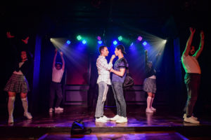 I thought that the ages of the cast members was a bit off and that Sebastian and Kathryn seemed a bit older than the others. If we had seen them on a larger stage in a bigger venue, that probably would not have been so evident. We all knw that the Pandemic took us away from theater and that many of us were ready to see something that would bring laughter, and joy, even if it was a bit risque. This show is certainly far from “family entertainment”, but if you are into the film or the music of the era or just someone who likes to watch plays about sex ( any type), this might be just right for you.