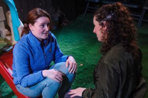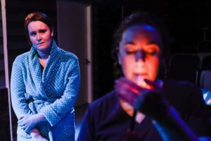 [rating=4]This little 30-seat theatre on Jarvis Street in Chicago produced some really exceptional stories that you do not see elsewhere in the Chicagoland area. “Cry It Out” is a great play for mothers, who will completely understand what these two unlikely neighbors/ friends are going through. The play starts out with Jessie, played by Allyson Womack, a corporate lawyer from Manhattan up for a partner, who just had a baby 7 weeks (about 1 and a half months) ago. Lina, played by Daniella Rukin is a night nurse manager who just had a baby 2 months ago, and shares the same backyard considering they are living in a duplex. They live in a nice middle-class suburb of Long Island, where the cliffs above them have the neighborhood of Sands Point, where they look down on this little community, and some even use a telescope to spy on their neighbors. Both have busy husbands who have long commutes for work, so the woman yearn for talking companions.