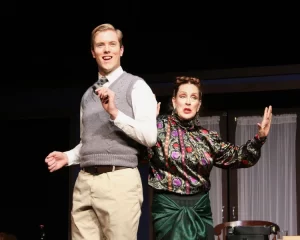 Fine acting and directing are the hallmark of MadKap Productions’ revival of this highly original play. For starters, Michael Lomenick is a tour de force. As Sidney Bruhl, he makes for a convincing playwright and professor of drama and holds the show together as its protagonist. Jeanne Dwan as his wife Myra Bruhl is willing to go along with his schemes and whims but only so far: She’s basically a moral person at heart, and you begin to wonder why she puts up with a man who likes writing thrillers and murder mysteries and who hangs all sorts of weaponry on the walls of his home office.