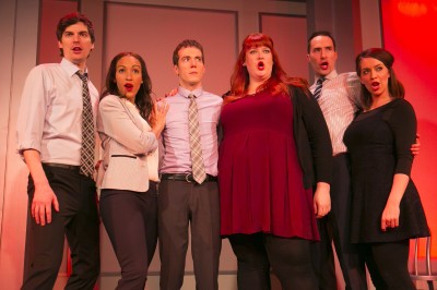 Directed by Mick Napier, who is also the musical director and who composed the original music used, this sprightly cast of characters are an assortment that keeps giving and giving… Chelsea Devantez, John Hartman, Mike Kosinski, Tawny Newsome, Emily Walker and Steve Waltien and a funny group. as they spoof the Nigerian e-mail scams, blind dates, musical orgies, advertising meetings and a whole lot more. There is music and lots of dancing and some movement that they might call dancing that truly shows off the rubbery legs and very slim bodies of the three males in this show. There is a “bit” ( of perhaps a sketch) about a couple turning their discussion into a song, but he ( the very hysterical Steve Waltien) has pre-recorded his material and lip-syncs to the displeasure of the gorgeous Tawny Newsome. This is a magical moment on stage!