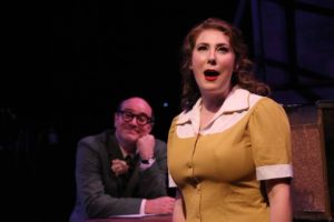 PLaying his wife, Kay, a role played in the original by Nancy Walker ( another famous name from the past, who most of you might recognize from her role as Rhoda’s mother Ida on the “Rhoda” TV series) is handled to perfection by one of my favorite musical comedy actresses, Nancy Voigts. Weber and Voigts are an amazing couple to watch. In fact, the entire ensemble was amazing. One must understand that they ONLY do three performances ( limiting you, the potential audience) so the fact that they learn an entire script and music and lyrics quickly with few rehearsals is on its own merit, a miracle, but the performance we saw was as good as it gets. There is also no set. They are using whatever happens to be there form the current show. In this case “Memphis” ( a glorious production that should garner several Jeff Awards), and just make it work!