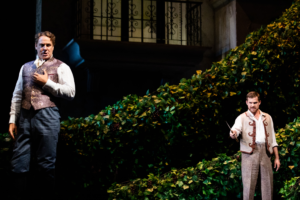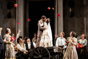 The play begins with Leporello (Matthew Rose) sulking because he has to keep watch while his master, Don Giovanni (Lucas Meachem in November, Davide Luciano in December) rapes Donna Anna (Rachel Willis-Sørensen). Anna succeeds in preventing Giovanni leaving for long enough to get help from her father, the Commendatore (Mika Kares), but Giovanni murders him and escapes with Leporello. Soon after, they encounter Donna Elvira (Amanda Majeski), whom Giovanni ghosted. Elvira is humiliated when Leporello explains that Giovanni used thousands of women as he pleased, and she leads Donna Anna and Donna Anna’s boyfriend, Don Ottavio (Ben Bliss) in an attempt at revenge. However, Giovanni proves immensely powerful, cunning, and lucky.