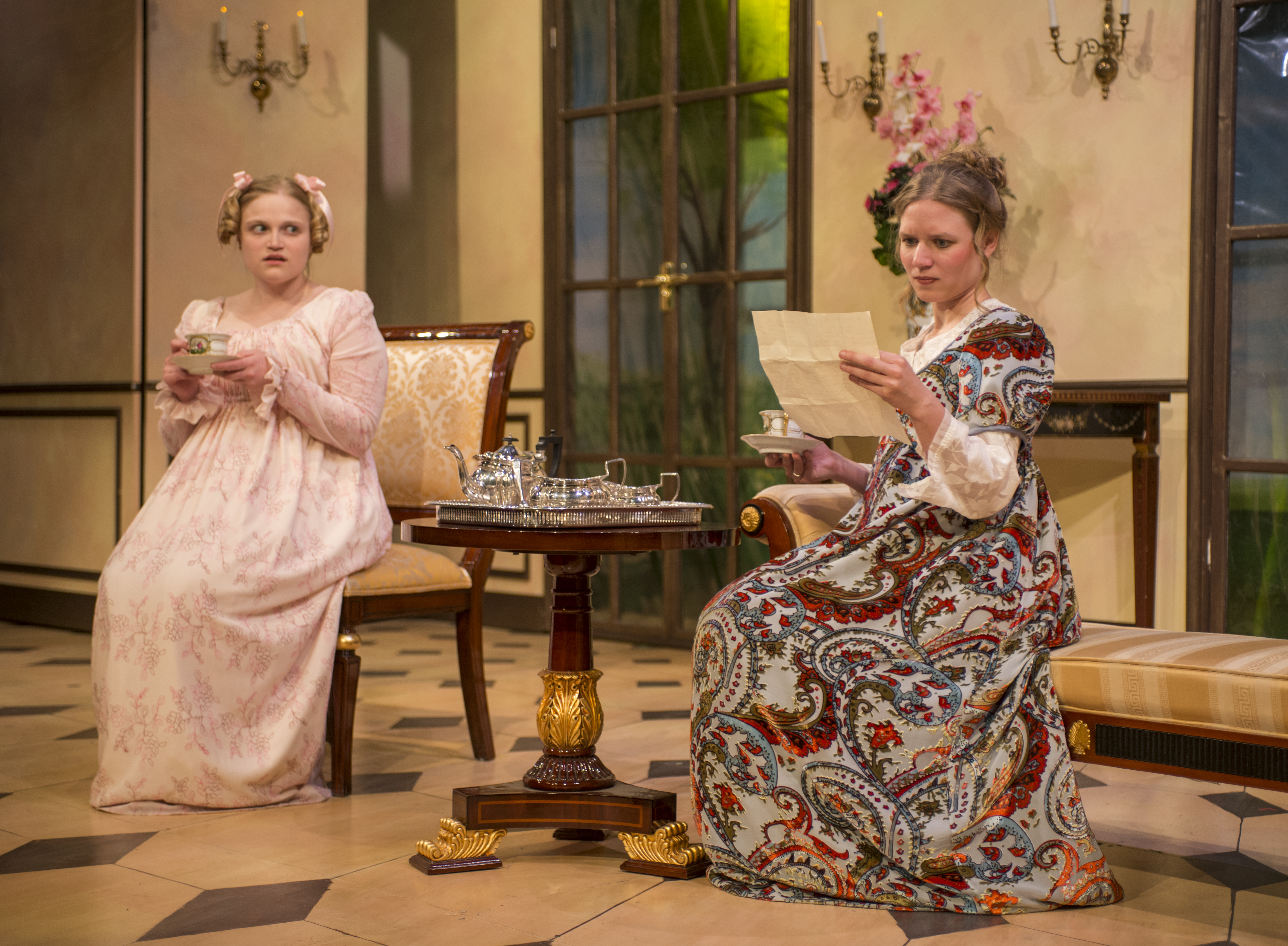 The story of “Emma” is one of a young lady who is precocious, to say the least, very self-centered, spoiled and extremely sure of herself. In this role, Heather Chrisler is divine and wins the hearts of the audience members from her very firs aside to them. She is sure that she will never marry so that she can keep her pledge to her father ( deftly played by Jerry Bloom) and becomes a “matchmaker” of sorts, making it her mission in life. Of greatest importance for her is to find a match for her dear friend, Harriet (Hilary Sigale) who is of a much lesser class and social standing.