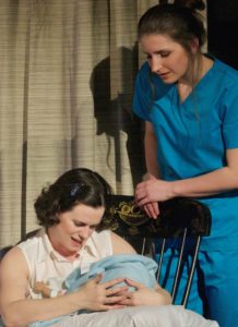 Later on, Robin is eventually to be transferred from the neonatal unit at Christ Hospital to a facility run by Misericordia in the suburb of Harvey, Illinois. But Jean has already bonded with the baby. Of course, she wants the child to come home with her so that she could take care of it. But the doctor, the attendants, and the hospital administrator feel very differently. It is evident that the baby will always have special needs, regardless of where it is placed and who ultimately cares for it. And what might Robin’s quality of life be? It is clear that the prospect of Jean’s wanting to adopt this child has already affected the couple’s marriage and possible relationships with relatives and friends. These ideas and more are fleshed out throughout this two-hour performance, which also stars Jamie Black, MiKayla Boyd, Andrea Conway-Diaz, marssie Mencotti, Rebecca Sparks, Lee Wichman, and Maria Zoia.