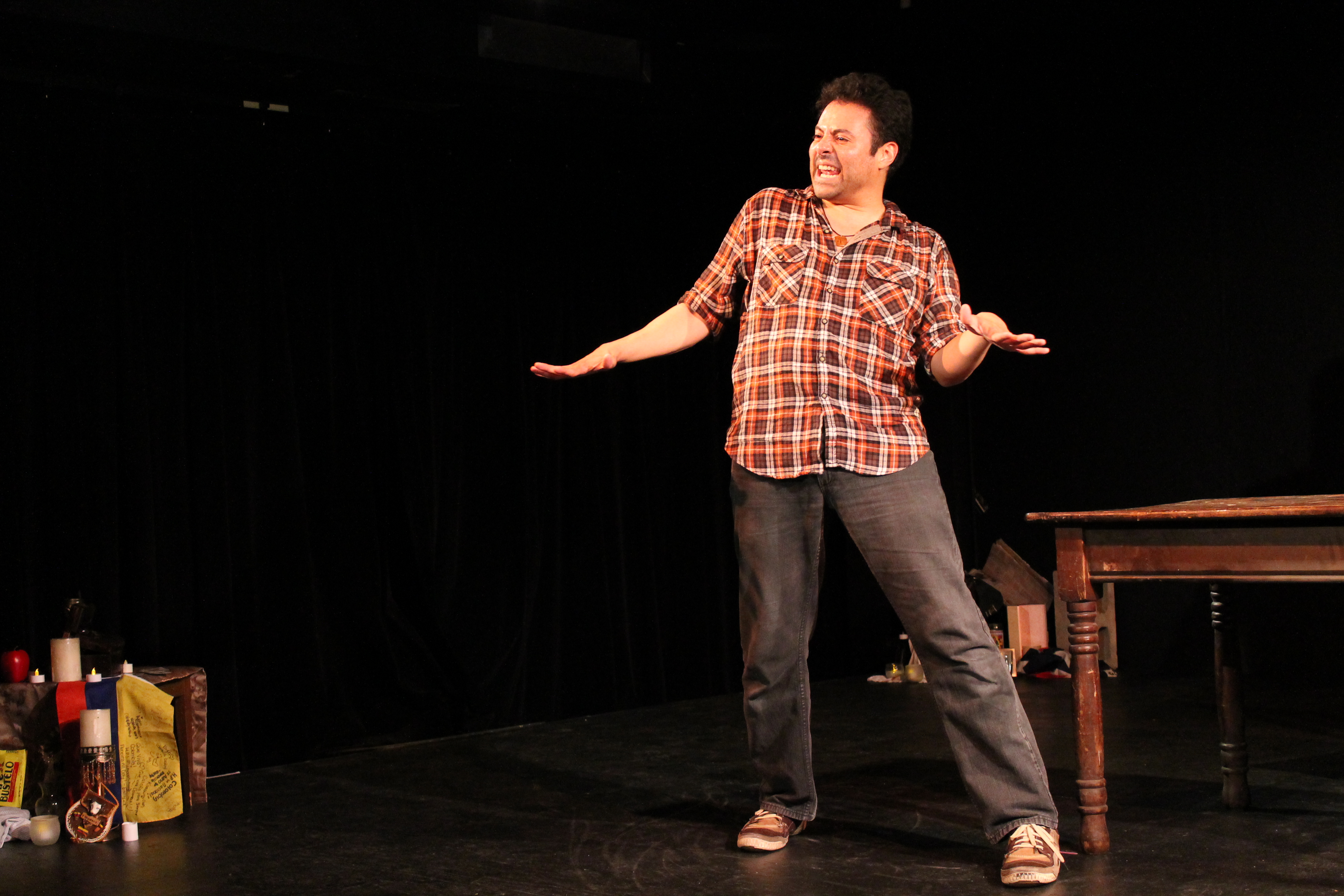 Directed by Alex Levy, “Empanada”, on an almost bare stage, allowing Mr. Villa the freedom to use the entire stage along with the center aisle, this is one man’s story of a family that caused a young boy pain and fear during his formative years. A Colombian family that lived on the lower east side of New York, that it turns out was somewhat in a world of drugs. Villa believes that the family is what controls our lives, not only during the time of growing up, but in the shaping of one’s future. Life on Allen street may be very familiar to audience members, even those from Chicago neighborhoods. It was a poor area, may people crowded into small tenement apartments. Kids played on the streets, with others watching from above, through windows or fire escapes or porches. I grew up in Austin ( not far from the theater where this is playing) and although our neighborhood was one of Jewish heritage, it was very close in nature. We were of the same faith, but from Germany,Russia,Poland and other spots, so our languages were different ( even the English our elders used sounded different) and the aromas of the “home” cooking spilled into the alleys and courtyards.