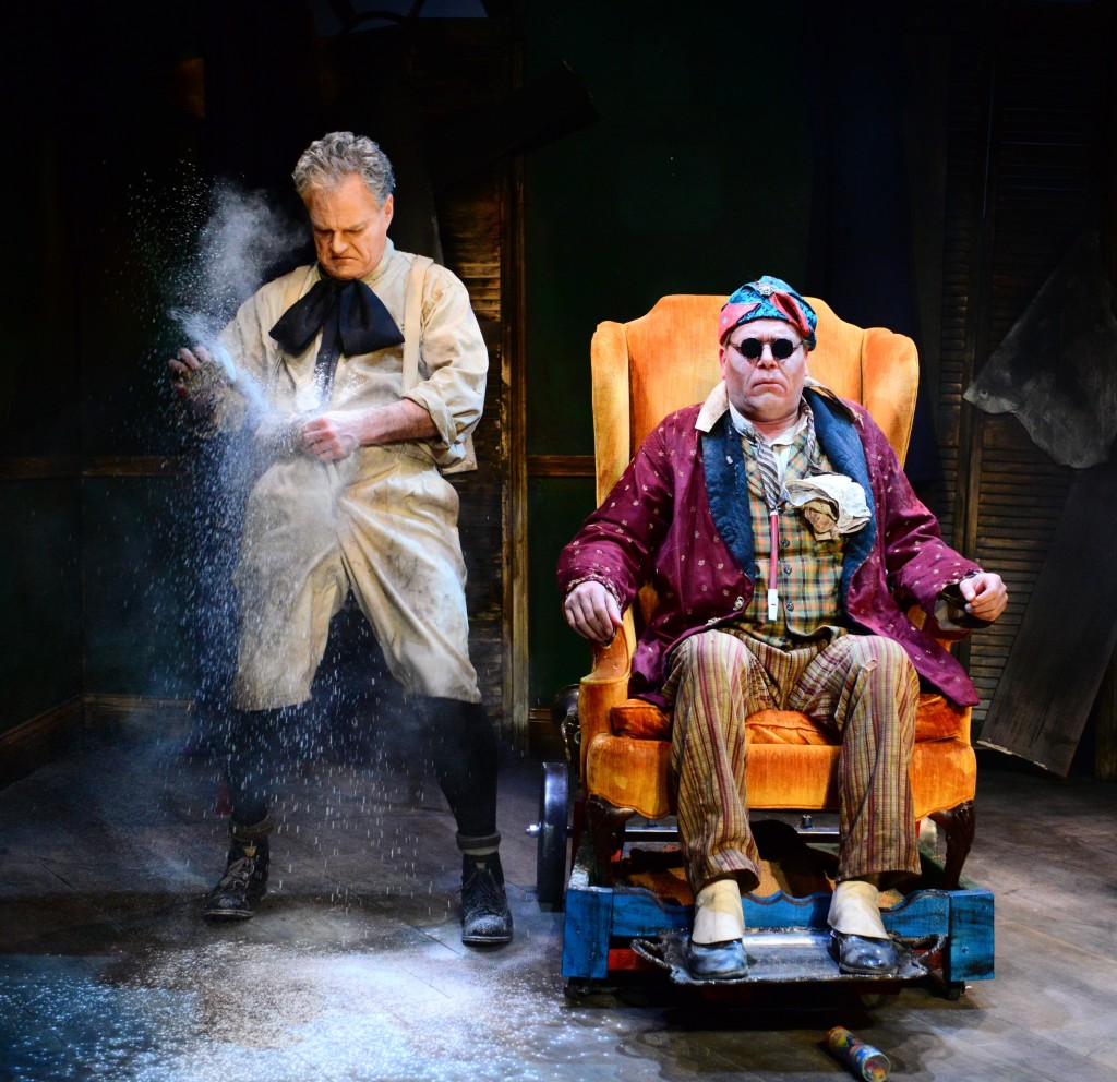 Hamm chided the man, asking him why he had left his son, and how he knew the child wasn’t dead rather than sleeping. Hamm and Clov aren’t exactly haunted—they control when they will appear—by what aren’t exactly the ghosts of Hamm’s mother Nell (Donna McGough) and father Nag (Sean Sinitski)—their costumes (Jessica Kuehnau) them look a lot more like corpses than shades, and they participate in some very corporal activities such as eating and sleeping. Nag accuses Hamm of waking him up as a child to complain about his fear and nightmares when it wasn’t really necessary (There are some strong suggestions that this may be a nightmare or psychotic delusion happening in Hamm’s head). Nags indictment, a rather strange and self-incriminating one, may point to the relationship between Hamm and Clov (Even though Hamm says he became like a father to Clov, Clov is the one now taking care of Hamm, and conversely, Hamm is giving Clov instructions about when to “bottle,” “feed,” and “wake” his father, Nag).