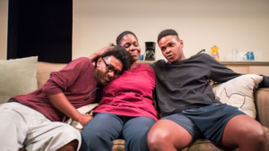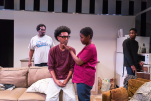 [rating=2]It is always a treat to bear witness to a new work by a young playwright. In some cases, it is evident that the writer came to a point where they were unsure as to how to end the story. While I enjoyed the storyline of Sam Kebede’s “ETHIOPIANAMERICA”, being presented by def-i-ni-tion Theatre Company, upstairs in the Richard Christiansen Theater at Victory Gardens, I became confused near the end of this sharply directed ( Sophiyaa Nayar) 90 minutes of theater. The play begins as we enter the theater itself to find a seat. On the stage, we see a man sleeping on the sofa, a young lad, sleeping in a loft, high above and another young man dancing around the house. This is a prelude to a very high energy story about a family that has emigrated from Ethiopia to California.The parents are Elizabeth Kifle ( a powerful performance by Gabrielle Lott-Rogers) and her husband, Grima (deftly handled by Joseph Primes). FYI- He sustains his accent throughout the entire 90 minutes, while she goes in and out.