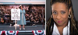 Onstage alone ( there are three musicians behind the screen) Ms Butler takes us on the voyage of how Fannie was able to do what she did. Fannie Lou Hamer was known for her political activism and efforts for civil rights. An uneducated woman who was as poor as one could be, she fought her way to gain the rights that were hers and for others. Not just for the African-American women, but for all women. She was involved in the founding of the Mississippi Freedom Democratic Party as well as the National Women’s Political Caucus.