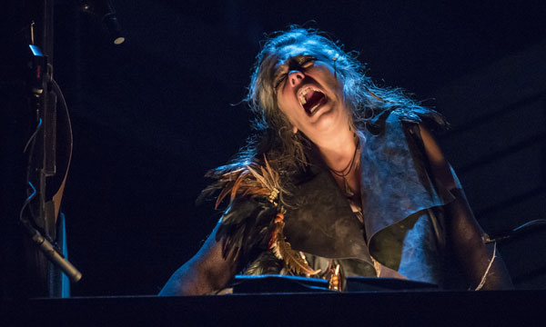feathers-and-teeth-7989Somewhat Recommended ** While I realize that we are heading into October and what one might call the “Halloween Season”, I am not sure that this calls for a new “horror” play. The Goodman is now featuring Charise Castro Smith’s, very dark, and macabre “Feathers and Teeth” in the Owen Theatre. This is the smaller venue that is very flexible, allowing then to build and rebuild for every play. For this production, a one act, 90 minute “adventure” thay have designed the setting to be a normal stage with normal seating. The story is about a very dysfunctional family, and under the slick direction of Henry Godinez on a wonderful set (Kevin Depinet), with great lighting effects (Jesse Klug) and sound (Mikhail Fiskel) we see a wild and wooly story that I believe Smith didn’t know how to finish.FTThumb_05