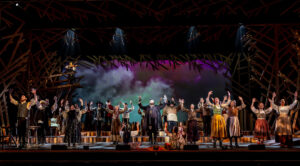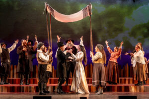 Walter, you nailed it. The only question I had was having some characters stay on stage when they were not a part of the scene. People around me asked why they were there? I am sure you had a reason, and I for one would love to hear the answer! By the way, the “Bottle Dance” during the wedding scene is magnificent, and the ensemble does a wonderful job. The run time is pretty close to three hours including one intermission, but it moves quickly and is worth it.