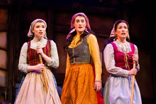 Tevye has five daughters, three of marrying age, and one of the prominent conflicts in this tale is a struggle with arranged marriages versus marriages for love. Matchmakers who arranged marriages were a “tradition,” but Tevye is challenged by his free thinking daughters who are not so quick to accept tradition, and he must cope with the possibility of change. The lovely song “Matchmaker, Matchmaker,” is nicely performed by Tzeitel (Yael Wartens), Hodel (Katelin Spencer), and Chava (Meredith Kochan).