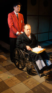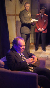 I have seen this play done before. In fact, Timeline did a spectacular production several years ago with one of my favorite actors, Terry Hamilton in the role of Nixon. I have watched Brian Parry play many a role at Redtwist and watching him take on this role was a surprise and a delight. He was masterful at making the real character come to life. Parry’s David Frost, Jason Richards ( a newcomer to Redtwist) does a very credible job playing this young man. His wig might work better in a larger venue, but being as close as we are to the actors in this space, it is difficult to hide the fact that he was indeed wearing one. His brilliant acting overcame this silly problem very quickly.