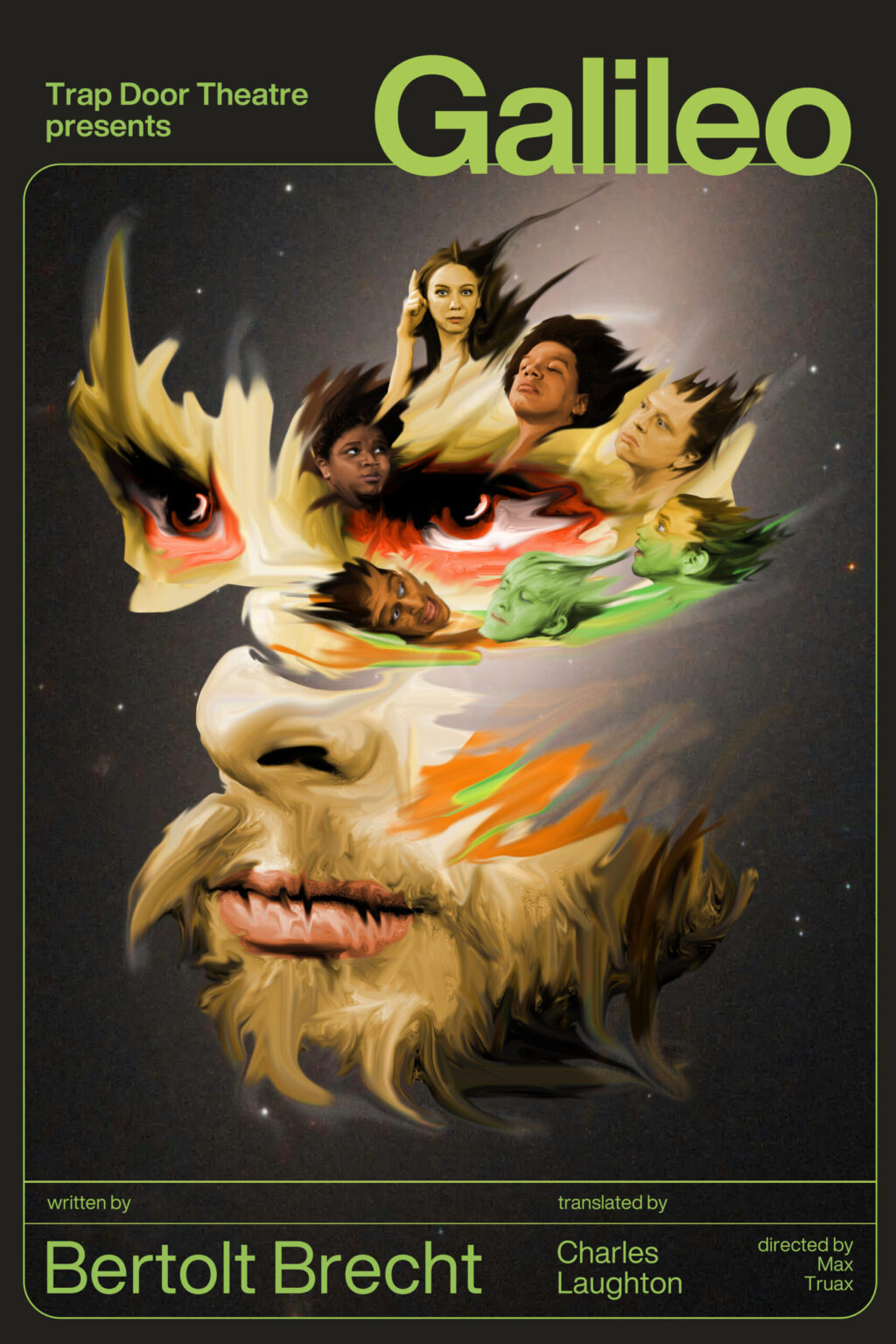 ***** You might think that if you know who Galileo Galilei was, you know how any dramatic representation of him will go. Galileo discovered heliocentrism and was persecuted for it by the Church, but ultimately vindicated by history. However, Bertolt Brecht’s 1938 biographical play recontextualized science’s protomartyr within very contemporary concerns about how research doesn’t get funded unless it promises to serve someone’s interest, that stating a fact you can observe with your own eyes is taking a political side, and that believing in progress of any kind is a leap of faith. As the new production at Trap Door Theater directed by Max Truax and based on a 1947 adaptation by Charles Laughton demonstrates, all those things are still true. Brecht famously did not intend for his works to be escapist, but instead to help his audience make sense of their immediate concerns, and this Galileo is a prime example of even over eighty years later, his plays seem to be ripped from the headlines.