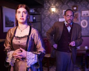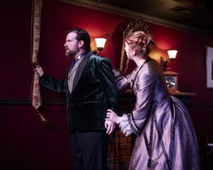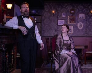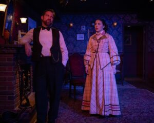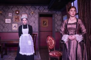Items missing or misplaced? Lights flickering? Lights dimming on their own? If you have some of these particular things taking place in your life, look around, as you might be being “Gaslit”. The crew at Oil Lamp do a great job of making Hamilton’s story come alive on their intimate stage. Rachel D. Hemm’s lighting is perfect and the costumes by Taylor Pfenning are very fitting of the period. The play is still taking on the identity of England, thus we do have to go through accents. Since there is no real mention of why it “must” be in England, I would love to see this play Americanized and let the actors speak our English. To be honest, I think audiences might prefer this. The props, many of which are quite important to this story are handled by Ellen Markus and Rick Reid handles the sound.