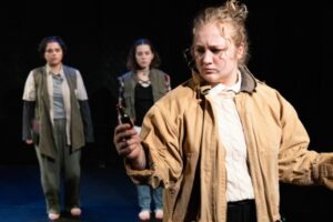Playwright Suz Evans’ bio states that their work examines their fundamentalist Christian childhood and acknowledges that subject matter may seem far removed from life in Chicago. I was interested by some ideas onstage, such as the ghost equating herself with her mother and the other queer characters whose existence was rejected, and found the last scene cathartic, but it’s true that the play wasn’t for me. Part of that is because I don’t think it’s long enough to develop its ideas; the show’s insight into homophobia is basically that it exists and is bad and I’m not sure if Sarah Jane saying she and Whitney “gave crabs to each other” and what that implies about her understanding of what happened was intentional, her being tactful, or just rushed past. Still, the show could resonate with people who are closer to its subject matter, and it is contextualized by the Trap Open series as an experiment. The artists are certainly serious about exploring it to its fullest.