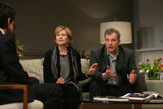 What starts out as a calm meeting to discuss how these two couples can keep their sons from a continuing war of personalities, but as the afternoon progresses, we begin to learn more about their own personalities and relationships disclosing to us that all four of these people are not happy with their lot in life or even their spouses. What transpires during this meeting is a virtual war between these couples as to what is right and what is wrong and rather than adult attitudes, they become more like kids fighting over a toy or wanting to be first in line- very base. In this rip-roaring, side splitting comedy, we have characters who fall apart at the seams right before our eyes; Alan, a tough Lawyer is on the phone trying to put out a major business fire with a client that has a medicine that appears to be dangerous. Michael’s mother it seems is being told to take this medicine. As the tension grows between the couples and each other, we have lots of physical comedy added to the comic words of Reza. These four actors are truly up to the task that Snyder creates as they tear into each other, throw props around the stage and verbal abuse at each other. The physical and mental comedy is so well executed that this hour of pure comedy seems like it is over to soon. I , for one, wanted it to go on and let me get into their heads, just a bit deeper- they are wonderful characters and despite being made larger than life for theatrical purposes, very well.