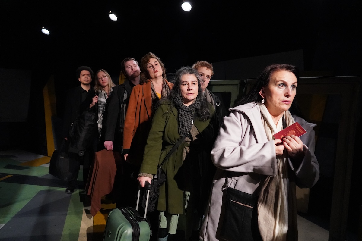 The most prominent feature of Merje Veski’s scenic design are the wheeled doorframes that the actors move through at various points throughout the play. Director Kay Martinovich is clearly comfortable with Brechtian Epic Theatre, using devices such as songs and projecting each scene’s title to achieve a distancing effect while maintaining the humanity of the play’s subjects. There are several highly meta moments, mostly involving the Actress’s work on historical dramas, in which the characters discuss what an artist’s intention is when portraying conflict. An in-universe Director (Jen Connor) says refugee stories are more effective as agitprop when they feature mostly female casts and devote a lot of attention to sexual violence. During the period after Russia occupied Crimea and Ukraine’s far East, but before the wholescale invasion, the Actress used to ask her directors if it was important to acknowledge serious flaws in slain historical Ukrainian artists. Over time, she stopped asking, apparently since doing that makes your own impending assassination sound like something reasonable people can disagree on. If playwright Natalka Vorozhbyt identifies with the Actress, where that character ends up could be taken as an interesting statement on art itself. Green Corridors is a deeply thoughtful work, and an expertly crafted production. And of course, you could hardly find something timelier.
