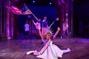 The set (Jeffrey D. Kmiec) is simply a rotating proscenium arch that converts easily with set pieces being added and subtracted and giving us the feeling of doing the circuit in vaudeville. Bill Morey’s costumes are terrific and the lighting ( Denise Karczewski) and sound (Robert Hornbostel) perfect. The props were assembled by Andrew Ashley Hatcher and Jennifer Wenau, who made sure they were all in the right place at the right time and in many cases are never applauded for this job. I applaud you!