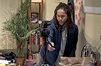 One of the most terrific things about the show was watching Cinna’s point-of-view in relation to the camera. By having him talk to the audience on his own personal video camera and into the camera on his laptop computer, we gain an additional perspective above and beyond the in-room camera design. Mike Tutaj deserves a lot of credit for accomplishing this feat, which personalizes the poet’s experiences as he relates them to his audience. The living room set and properties design were perfectly appropriate. I loved the fact that the props indicated that we were in the midst of the current pandemic, with the mask and hand sanitizer on the floor; credit for such detail must go to Persephone Lawrence-Wescott, interim properties supervisor. But I found myself much too distracted by the pet goldfish. At first, I thought that it had died during the performance and that Cinna was paying more attention to his cell phone than to his fish, and that disturbed me. After awhile, he finally noticed the fish and gave it some fish food. Perhaps this was meant to be an analogy to the role of the poet in society, being fed by the scraps of those in power. Only once the fish was fed could I relax a bit and fully get into the story. Then towards the end, I pressed the 10 seconds back plus another 10 seconds back and lost the video stream entirely. I had to start all over again and return to the place where the stream had cut out.