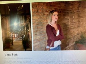 Highly Recommended **** I begin this review by saying, “Thank you 4 Chairs Theatre for your cleverly produced “Island Song”. While watching this wonderful piece makes me wish I was back in the theater watching a “live” production, I must say, this video presentation was as close as one might get to being there! Under the direction of Lauren Berman, this Midwest premiere of Carner and Gregor’s musical is well cast, well performed and very well put together. I know that once Berman can move it to a real stage where the actors can actually play off each other, the mood and the feel will be even stronger. Let us hope that this will take place ( sooner than later).