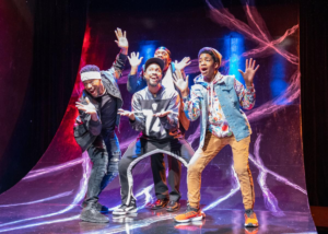 The tech parts of the production are powerful as well. Jeffrey Levin’s sound, Jason Lynch’s lighting, Izumi Inabas’s costumes and Mealah Heidenreich’s props are very fitting and create the feel that we need. The music by Levin is stimulating. The choreography of movement by Breon Arzell is amazing and this cast must feel as if they enjoyed a workout every performance.
