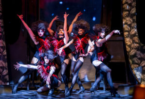 Costumes by Justin LeBlanc not only capture the spirit of the cabaret performance but reflect the souls of each of the characters. From sexy leotards and tights to overgarments circa the early 1970s, the costumes are nicely conceived and delicately crafted. My only quibble is that I felt that Michael’s initial costume with the red, white, and blue striped slacks was somewhat gaudy and should have been better coordinated with the outfit being worn by Anne, his female love interest. His stripes and her plaid made it seem as if they were really not suited for each other. Plus her plaid slacks looked too much like those worn by Frances (Anthony Whitaker). The costuming should have made them look nothing like each other.