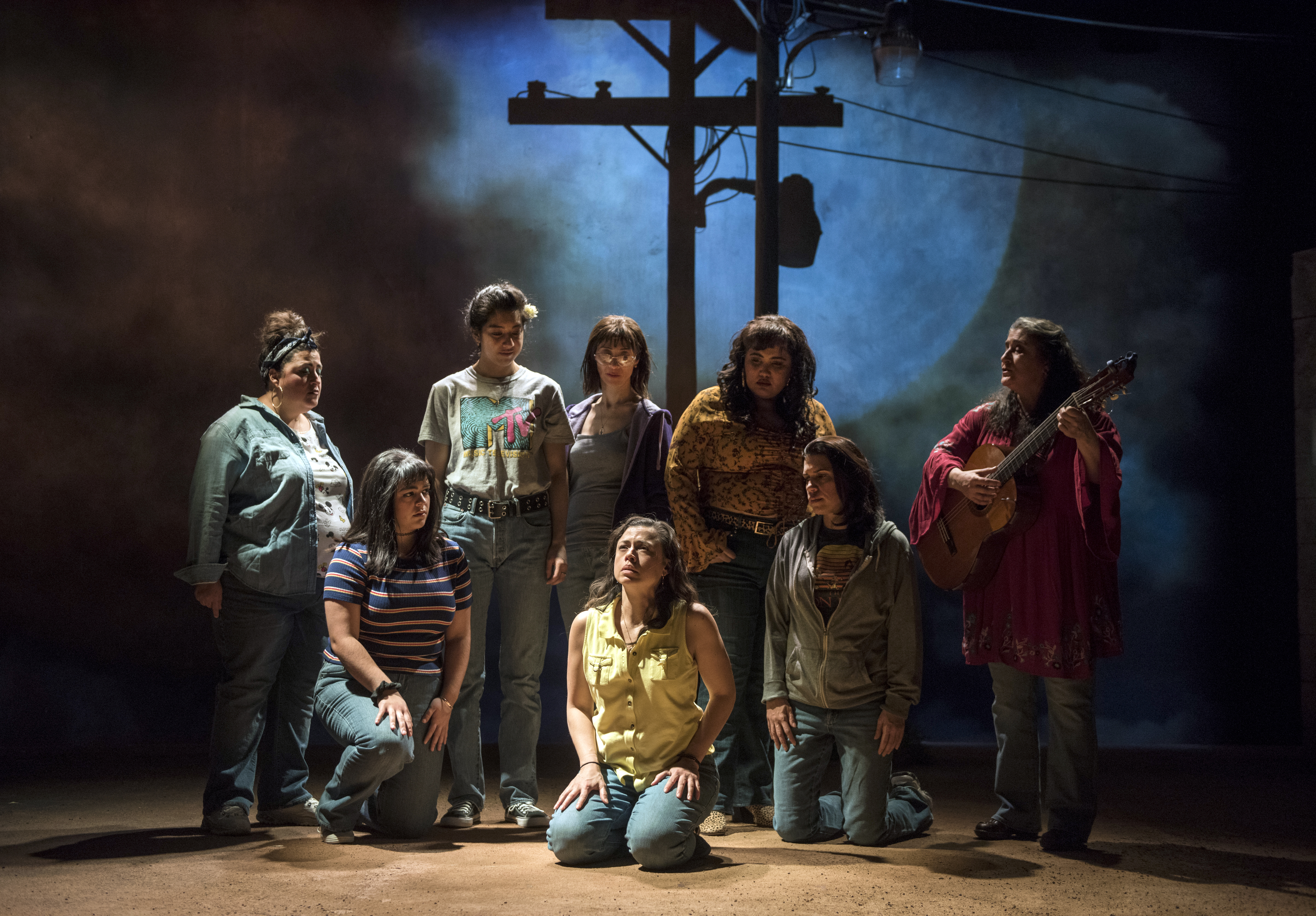 “La Ruta” is a tightly woven 100 minutes of solid story telling, sharply directed by Sandra Marquez on a set designed by Regina Garcia that allows us to see the simple lives these workers live. We are also privy to a graveyard of sorts where many of those found have crosses bearing their names, so the townspeople can remember those they loved. The lighting ( Jesse Klug) and sound (Mikhail Fiksel) as always is superb and the music direction by Zacbe Pichardo, excellent!! Laura Crotte, A Teatro Vista company member handles the guitar and the main vocal with great energy and her final song is so hauntingly beautiful, you will get chills up and down your spine. The songs date back as far as 1882 and are as current as 2008. Each adds great meaning to the story we are being told.