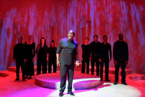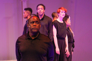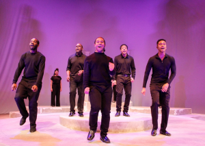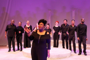 As usual, the music is conducted by Robert Reddrick ( drums) with Adam Sherrod (keyboards), Mark Miller (bass) and Gary Baker (guitar), They make the music for these singers to bring our sage alive. While they had a few snags in the sound for the most part David Samba’s sound was okay ( I heard every word without hearing aids) and the lighting (Denise Karczewski) is very effective. Lemond Hayes’ choreography is very moving and the projections ( DJ Douglass) are solid. Directed with great heart and soul by Jackie Taylor, the entire theater becomes her stage. The message in this production is not just about “Black Lives Matter”, but every person, no matter their race, religion or life-style. Her mission in starting Black Ensemble was to use theater as her platform to eradicate racism. Perhaps this play will open up some eyes that are blind to what is around them and allow us to go forward. I sure hope so!
