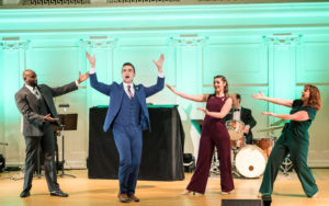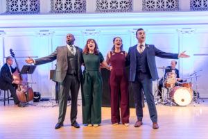 The cast is made up of Samantha Behen, who we just saw in “Hunchback”, Alicia Berneche, (one of Music Theater Works regulars), Martin L. Woods  ( who many might remember from” Duke Ellington’s Greatest Hits”) and Billy Dawson ( who recently played Quasimodo in “Hunchback”). These four performers,  compromise the range of voices that are perfect for the songs selected, and truly enjoyed every second of performing for the audience. Being concert style, they can play with the audience a bit and they do!