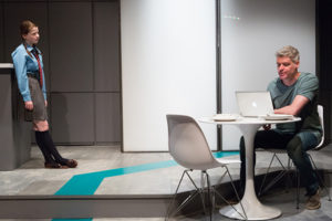 The set (Joe Schermoly) is dynamite and makes great use of a small space, where the audience is less that 10 feet from the action. The lighting (Brandon Wardell) and sound (Thomas Dixon, who also composed the incidental music) are terrific. I was impressed with some of the costumes (Izuma Inaba) but felt that an executive, even a trainee, like Luke, would have more than one suit for the entire play. The props (Emma Cullimore and Derik Marcussesen) are also magic, and while the dialect coach , Adam Goldstein, did work with the cast on their British accents, I wonder why they needed to use this at all. Couldn’t this all have taken place in the Midwest, or East Coast? Might have been even more effective!