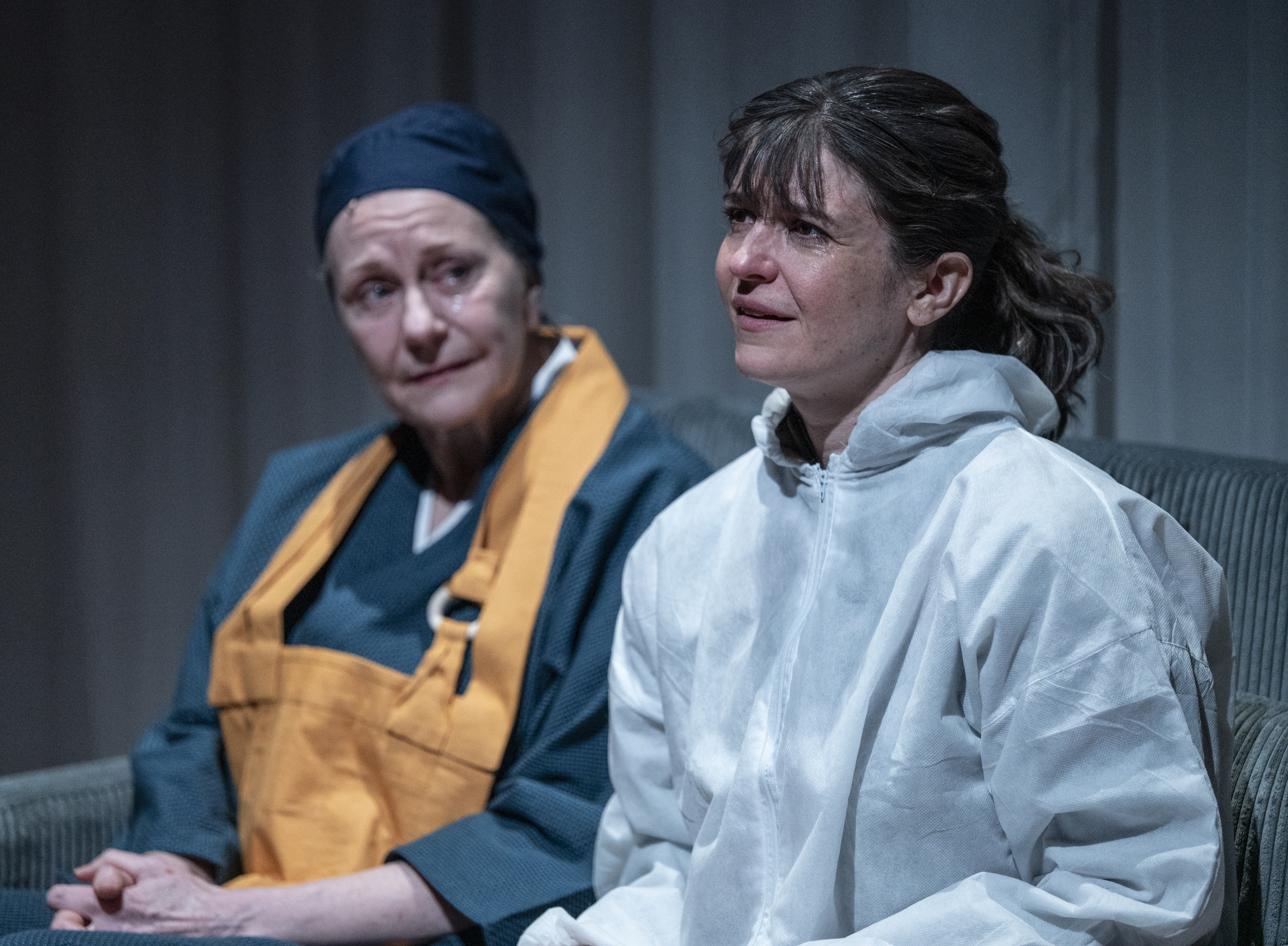 On the tech side, the set ( A Inn Doo) is simple and quite easy to transform from apartment to hospital. The costumes( Steph Taylor) are realistic and designed for quick changes allowing a smooth transition from scene to scene. Eric Watkins’ lighting and the sound and original music (Christopher Kriz) added to the quality of the production and Lonnae Hickman’s props were great. My co-host is a Physicians Assistant, and when I discussed the medical elements of the script and production, he said they were “right on”!