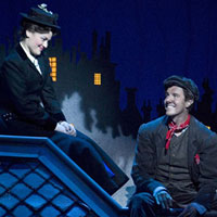 Somewhat Recommended Classic Disney returned to The Cadillac Palace Theatre tonight in the form of “Mary Poppins” the hit musical that was created from the Disney Film. Back in 2009 the touring production played at the same theater to sell out crowds in its 18 week engagement. This time it is here for a much shorter trip as it heads for points throughout the Midwest. The movie version starring the marvelous Julie Andrews as Mary and the smashing diverse Dick VanDyke as Bert is a family favorite and the play version, while it does not have the magic of the mixture of film and animation, does have some magical moments of its own. Mary Poppins ( a rousing performance by Rachel Wallace) does fly in and out and makes a startling final departure that will have kids heads turning toward the sky; Bert ( a very talented Nicolas Dromard) who also serves as storyteller does a dance during the “Step In Time” that will knock your socks off, as he dances up the side wall, then taps while upside down and then comes down the other side. his is a number that is truly a show stopper and worth the price of the ticket on its own.
